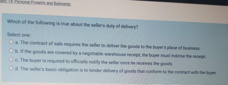 Solved Obic 14 Personal Property And Bailments Which Of The Chegg Com